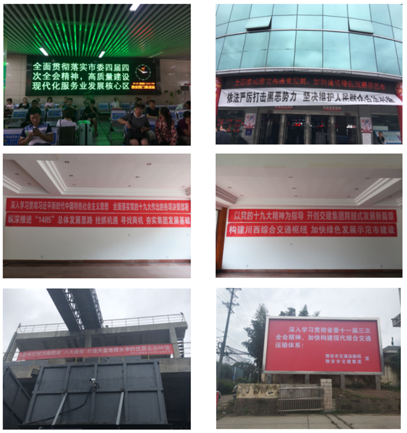 二是充分利用服務(wù)平臺優(yōu)勢擴大宣傳。充分發(fā)揮蜀通公司車站、車輛等人流量大的優(yōu)勢,利用出租車LED顯示屏、公交車顯示屏和車載終端、西門車站等各站電子屏、站外橫幅等宣傳載體宣傳市委四屆四次全會,僅蜀通公司宣傳標(biāo)語就多達43條,滾動播出上萬次。