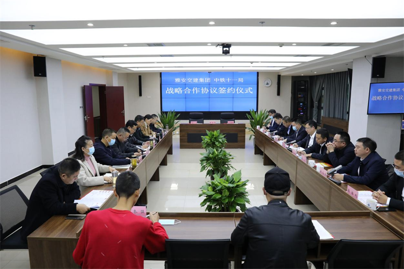 漆家華發(fā)表致辭,對(duì)中鐵十一局集團(tuán)呂 涵一行的到來表示歡迎,并簡(jiǎn)要介紹了集團(tuán)公司主營業(yè)務(wù)板塊和生產(chǎn)經(jīng)營情況。漆家華表示,中鐵十一局集團(tuán)有限公司是集施工、設(shè)計(jì)、科研于一體的世界500強(qiáng)企業(yè)、中國鐵建股份有限公司的骨干成員企業(yè),是擁有鐵路、公路、建筑、市政公用工程施工總承包“四特四甲”資質(zhì)的特大型建筑企業(yè)集團(tuán)。雅安交建集團(tuán)是雅安市委、市政府批準(zhǔn)成立的交通運(yùn)輸行業(yè)重點(diǎn)國有企業(yè),是市委、市政府“交通強(qiáng)市”戰(zhàn)略的重要承載主體,主要承擔(dān)全市重大交通基礎(chǔ)設(shè)施的投資建設(shè)、運(yùn)營管理,以及交通資源的綜合開發(fā),經(jīng)過3年多的發(fā)展,初步形成了“工程項(xiàng)目建設(shè)、建材生產(chǎn)銷售、交通資源開發(fā)”三大主營業(yè)務(wù)和貿(mào)易物流、公交客運(yùn)、檢驗(yàn)檢測(cè)等傳統(tǒng)業(yè)務(wù)。希望雙方以簽訂戰(zhàn)略合作協(xié)議為契機(jī),在川藏鐵路建設(shè)“三電”遷改、建材供應(yīng)等已進(jìn)行實(shí)質(zhì)性合作和“片區(qū)開發(fā)”探討交流的基礎(chǔ)上,在項(xiàng)目投資、資源開發(fā)、建材供應(yīng)、運(yùn)輸物流等方面開展深度合作,開啟雙方互惠共贏的新局面,促進(jìn)雙方共同發(fā)展。