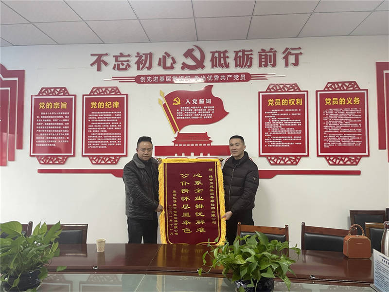 近日,贏信匯通(雅安)智能制造有限公司將一面印有“公仆情懷盡顯本色 心系企業(yè)排憂解難”的錦旗送到平順公司,對公司提供的高效、便捷、優(yōu)質(zhì)的服務(wù)表示感謝。