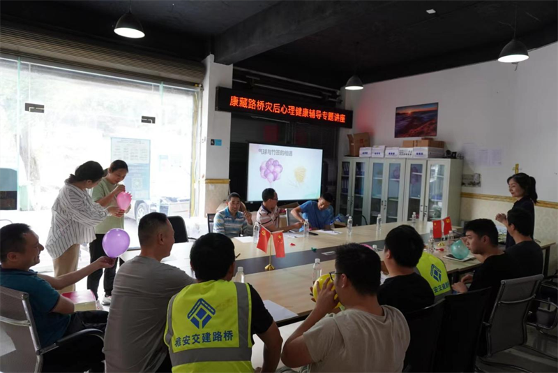 地震無情人有情。當(dāng)前,蘆山“6.1”地震抗震救災(zāi)已轉(zhuǎn)入災(zāi)后恢復(fù)重建階段,為進(jìn)一步強(qiáng)化員工心理素質(zhì),促進(jìn)心理韌性提升,更好地?fù)?dān)起災(zāi)后重建重任,6月17日,四川康藏路橋有限責(zé)任公司特邀雅安中學(xué)專職心理教師左月在寶興分公司開展“情緒調(diào)節(jié)與心理減壓”心理健康專題講座,對堅(jiān)守在抗震救災(zāi)和災(zāi)后恢復(fù)重建一線員工進(jìn)行心理健康知識宣傳和情緒疏導(dǎo)。
