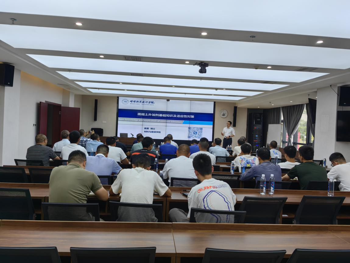 培訓(xùn)邀請(qǐng)綿陽(yáng)職業(yè)技術(shù)學(xué)院材料與建造學(xué)院院長(zhǎng)賈陸軍、蔣勇兩位博士授課,重點(diǎn)圍繞配合比設(shè)計(jì)中需注意的事項(xiàng)展開(kāi),詳細(xì)講解配合比設(shè)計(jì)要點(diǎn),分析原材料選擇及礦粉、粉煤灰摻合料摻配比例的重要性,總結(jié)交流機(jī)制砂在混凝土中的應(yīng)用技術(shù),講解混凝土外加劑基礎(chǔ)知識(shí)、分析目前外加劑在使用過(guò)程中適應(yīng)性問(wèn)題和原因,通過(guò)真實(shí)案例分析混凝土質(zhì)量問(wèn)題的原因及管控要點(diǎn)等。