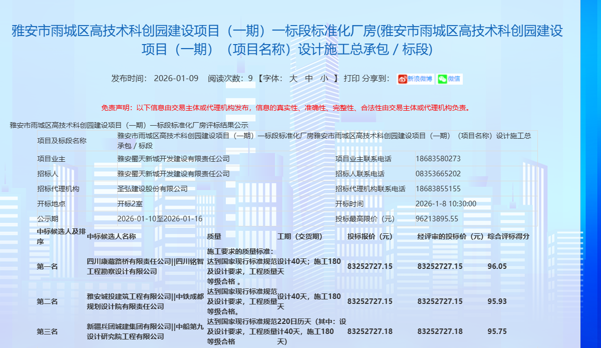 蓄勢(shì)突破,奮楫開(kāi)新?挡芈窐蚬境晒孬@雅安市雨城區(qū)高技術(shù)科創(chuàng)園建設(shè)項(xiàng)目(一期)一標(biāo)段標(biāo)準(zhǔn)化廠房項(xiàng)目,中標(biāo)金額8325.27萬(wàn)元,為公司2026年發(fā)展強(qiáng)勢(shì)開(kāi)篇,迎來(lái)馬年“開(kāi)門(mén)紅”。