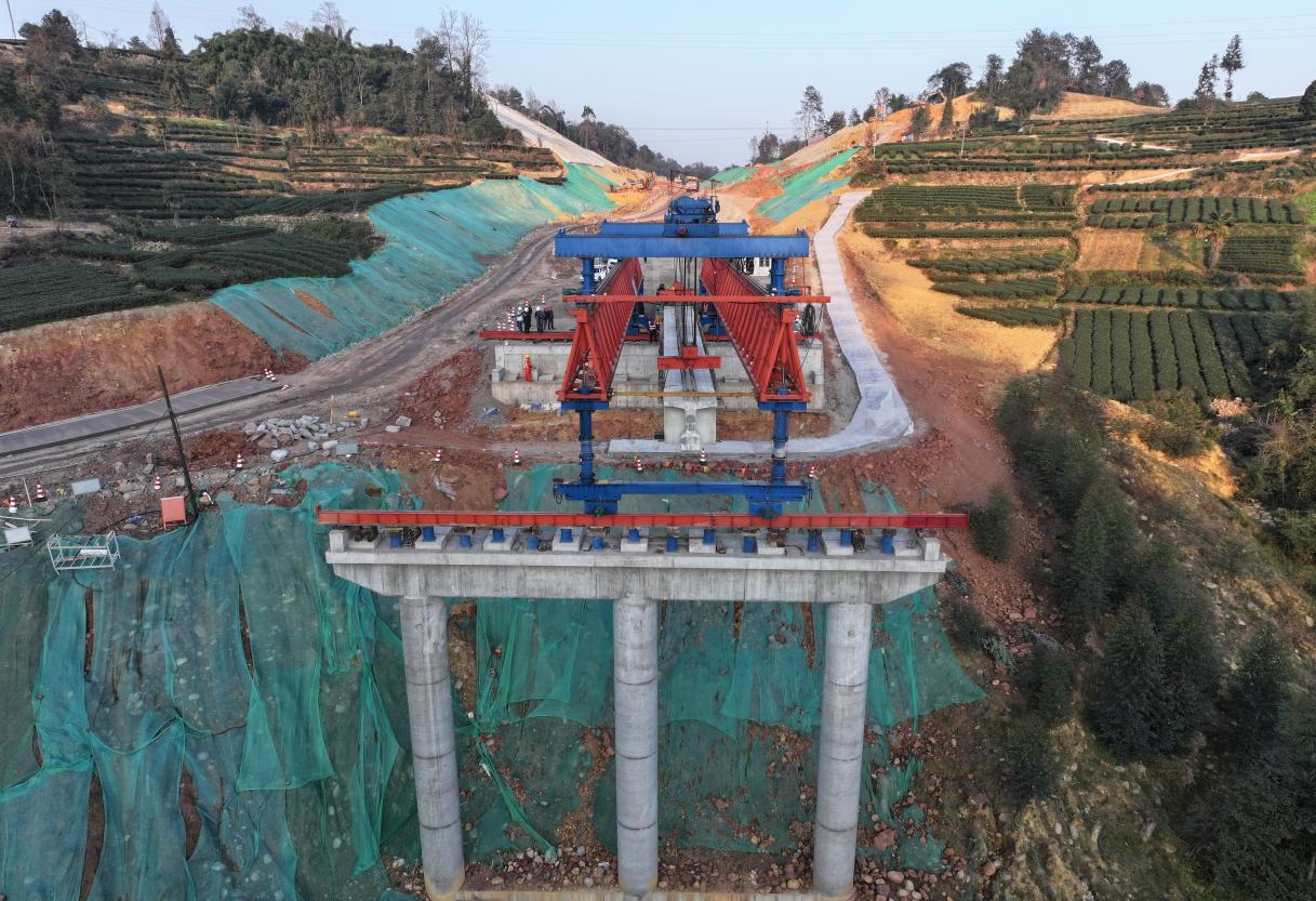 流水化施工,大力提升了架梁效率與作業(yè)安全性。截至目前,馬家溝1號(hào)橋建設(shè)取得關(guān)鍵進(jìn)展,第一跨首片梁已順利完成架設(shè)。這一突破標(biāo)志著橋梁施工正式進(jìn)入快速推進(jìn)階段,為后續(xù)馬家溝2號(hào)橋的架設(shè)及全線(xiàn)橋梁貫通邁出關(guān)鍵性的一步。