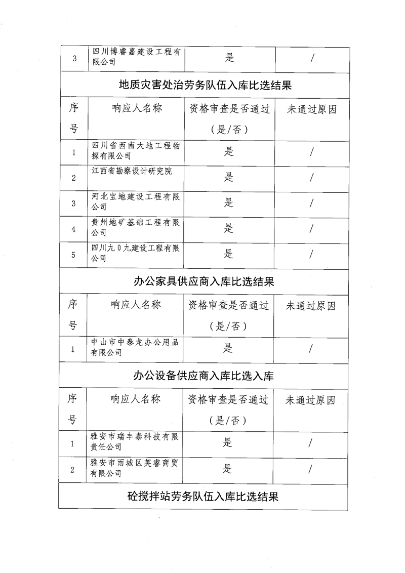 雅安交通建設(集團)有限責任公司比選入庫補錄結果公示