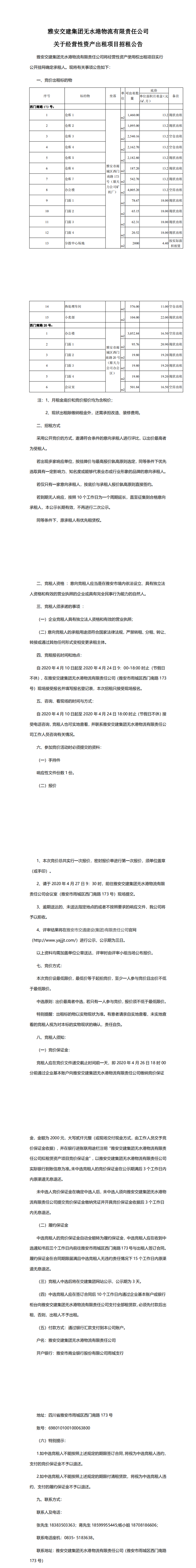雅安交建集團(tuán)無(wú)水港物流有限責(zé)任公司關(guān)于經(jīng)營(yíng)性資產(chǎn)出租項(xiàng)目招租公告