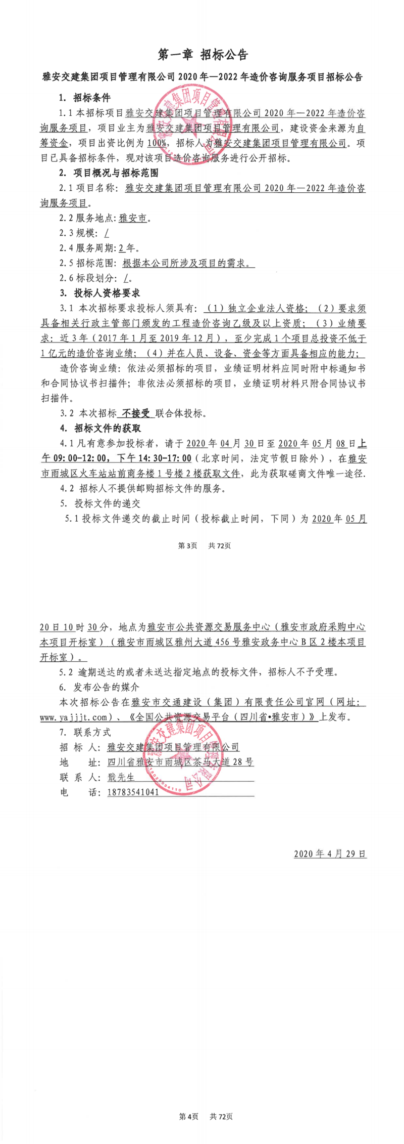 雅安交建集團(tuán)項目管理有限公司2020年-2022年造價咨詢服務(wù)項目招標(biāo)公告