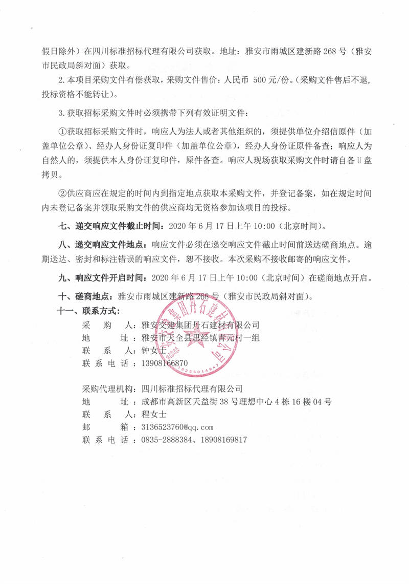 雅安交建集團丹石建材有限公司2018—2020年度項目工程造價咨詢服務(wù)項目競爭性磋商公告