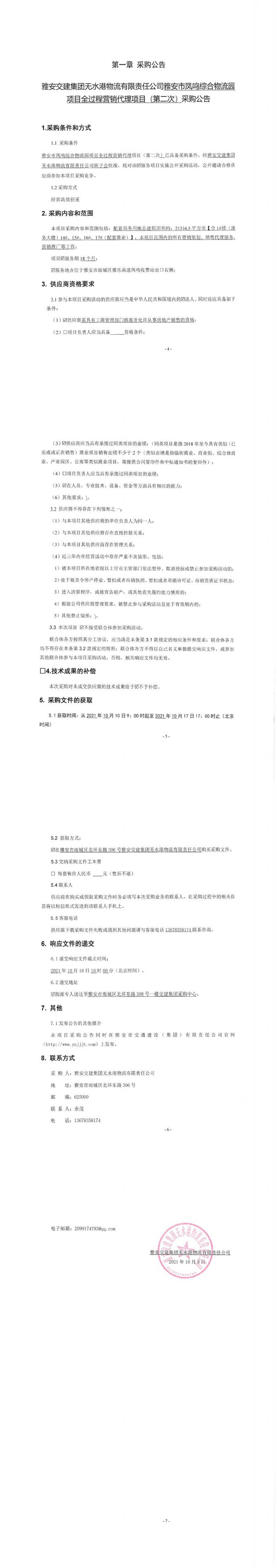 雅安交建集團(tuán)無水港物流有限責(zé)任公司雅安市鳳鳴綜合物流園項(xiàng)目全過程營銷代理項(xiàng)目(第二次)采購公告