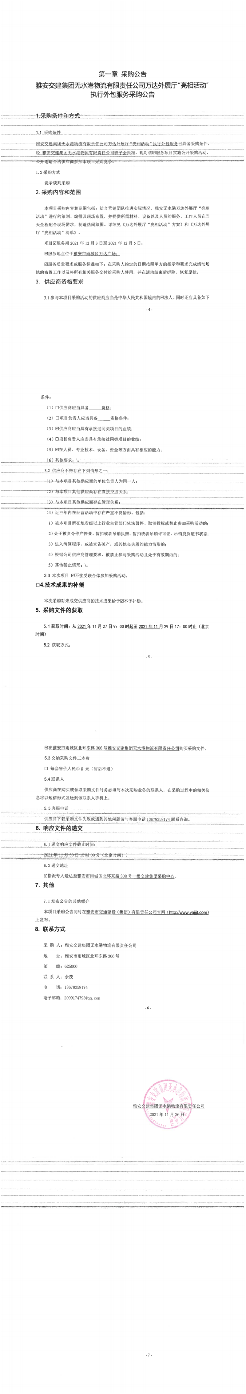 雅安交建集團(tuán)無水港物流有限責(zé)任公司萬達(dá)外展廳“亮相活動(dòng)”執(zhí)行外包服務(wù)采購(gòu)公告