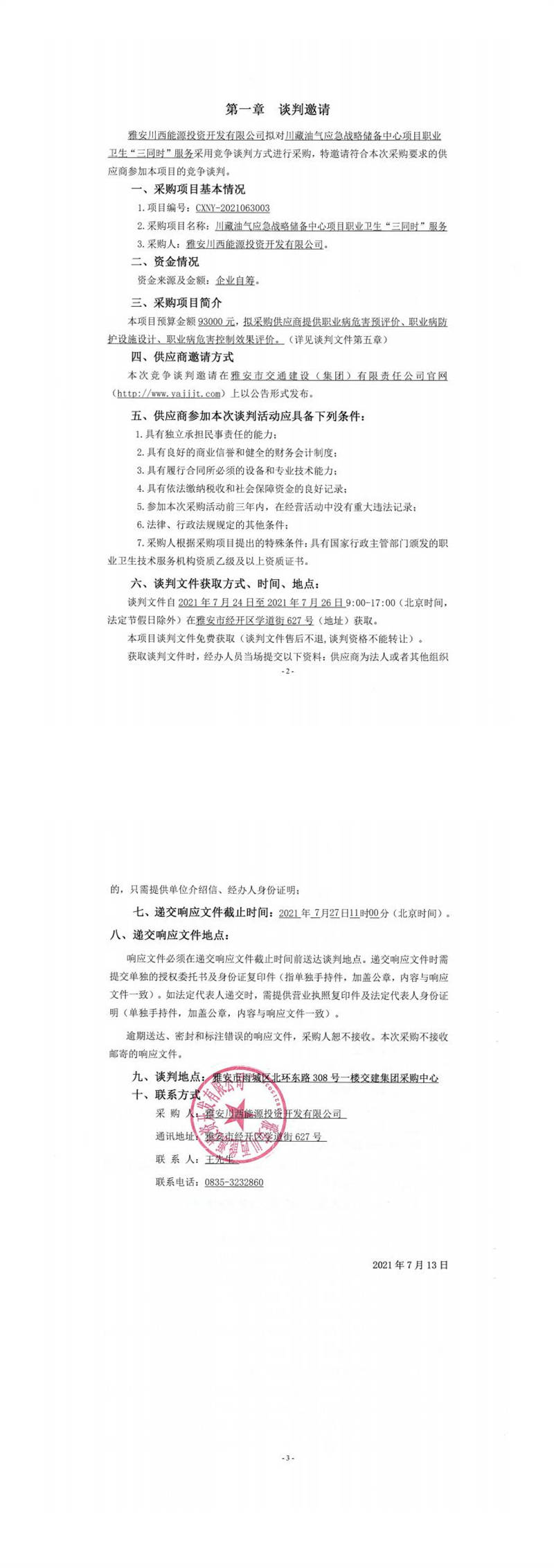 雅安川西能源投資開發(fā)有限公司川藏油氣應(yīng)急戰(zhàn)略儲(chǔ)備中心項(xiàng)目職業(yè)衛(wèi)生“三同時(shí)”服務(wù)競(jìng)爭(zhēng)談判公告