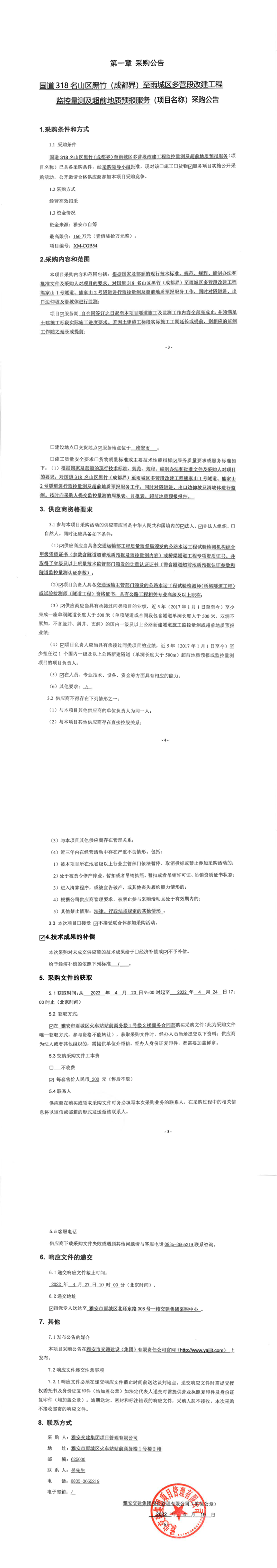 雅安交建集團(tuán)項(xiàng)目管理有限公司國道318名山區(qū)黑竹(成都界)至雨城區(qū)多營段改建工程監(jiān)控量測及超前地質(zhì)預(yù)報(bào)服務(wù)采購公告