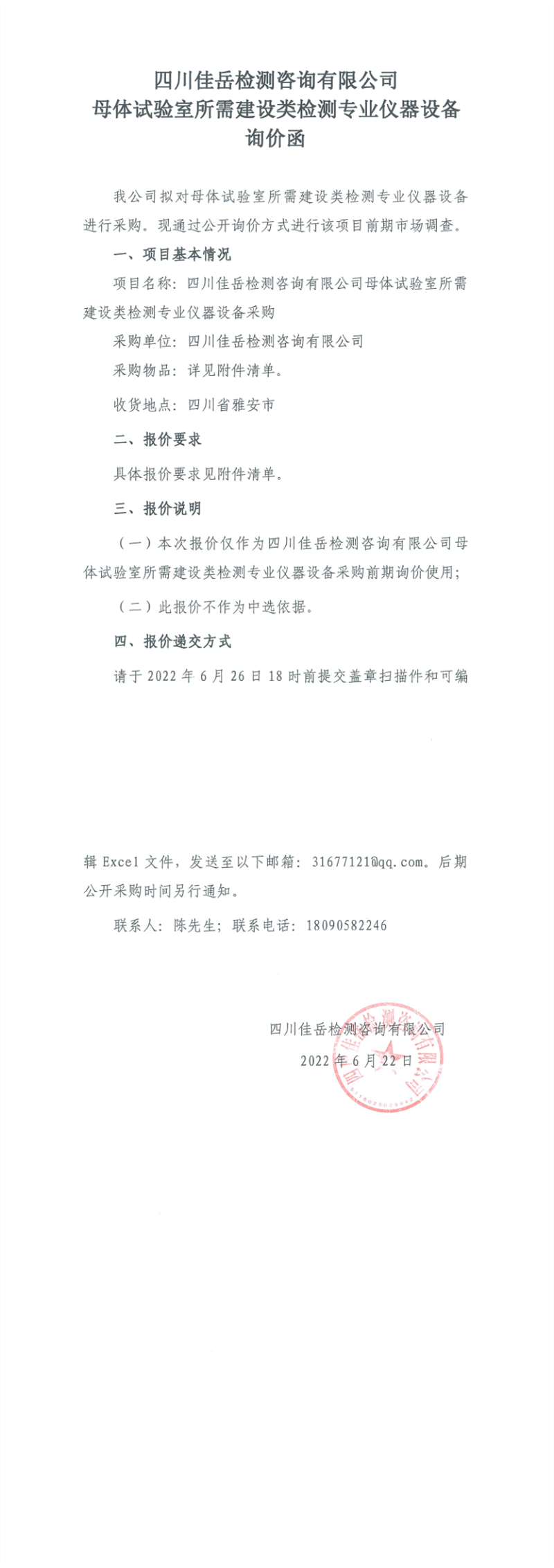 四川佳岳檢測咨詢有限公司母體試驗(yàn)室所需建設(shè)類檢測專業(yè)儀器設(shè)備詢價函