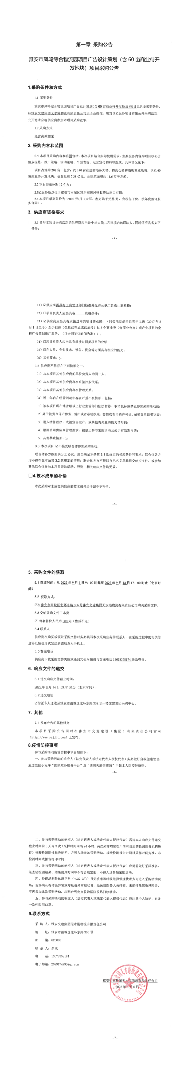 雅安交建集團(tuán)無水港物流有限責(zé)任公司雅安市鳳鳴綜合物流園項(xiàng)目廣告設(shè)計(jì)策劃(含60畝商業(yè)待開發(fā)地塊)項(xiàng)目采購(gòu)公告