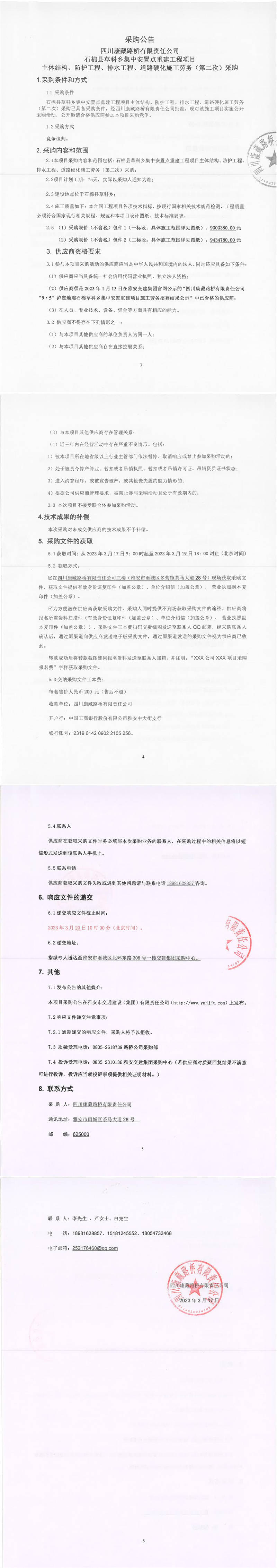 四川康藏路橋有限責任公司石棉草科鄉(xiāng)集中安置點重建工程項目主體結(jié)構(gòu)、防護工程、排水工程、道路硬化施工勞務(wù)(第二次)采購公告
