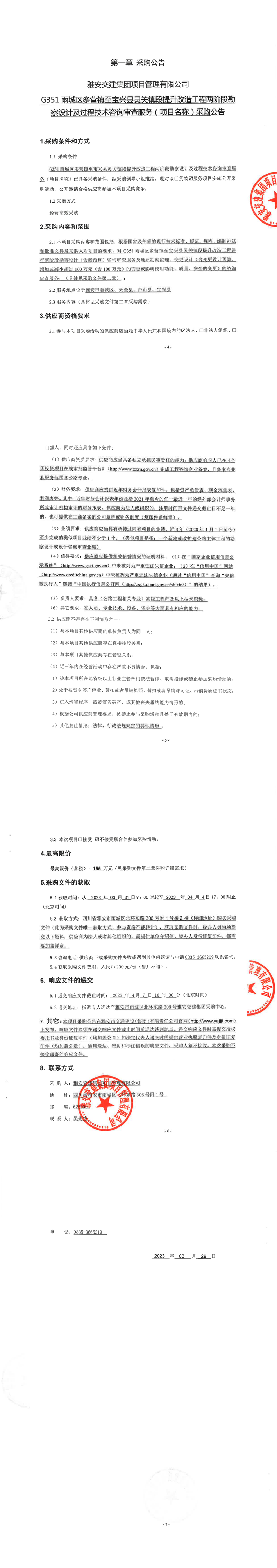 雅安交建集團(tuán)項目管理有限公司G351雨城區(qū)多營鎮(zhèn)至寶興縣靈關(guān)鎮(zhèn)段提升改造工程兩階段勘察設(shè)計及過程技術(shù)咨詢審查服務(wù)(項目名稱)采購公告