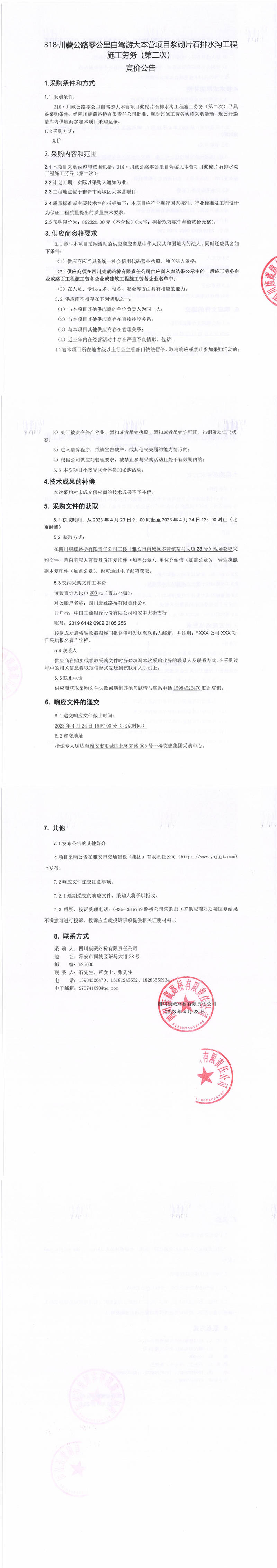 四川康藏路橋有限責(zé)任公司318·川藏公路零公里自駕游大本營項(xiàng)目漿砌片石排水溝工程施工勞務(wù)(第二次)采購公告