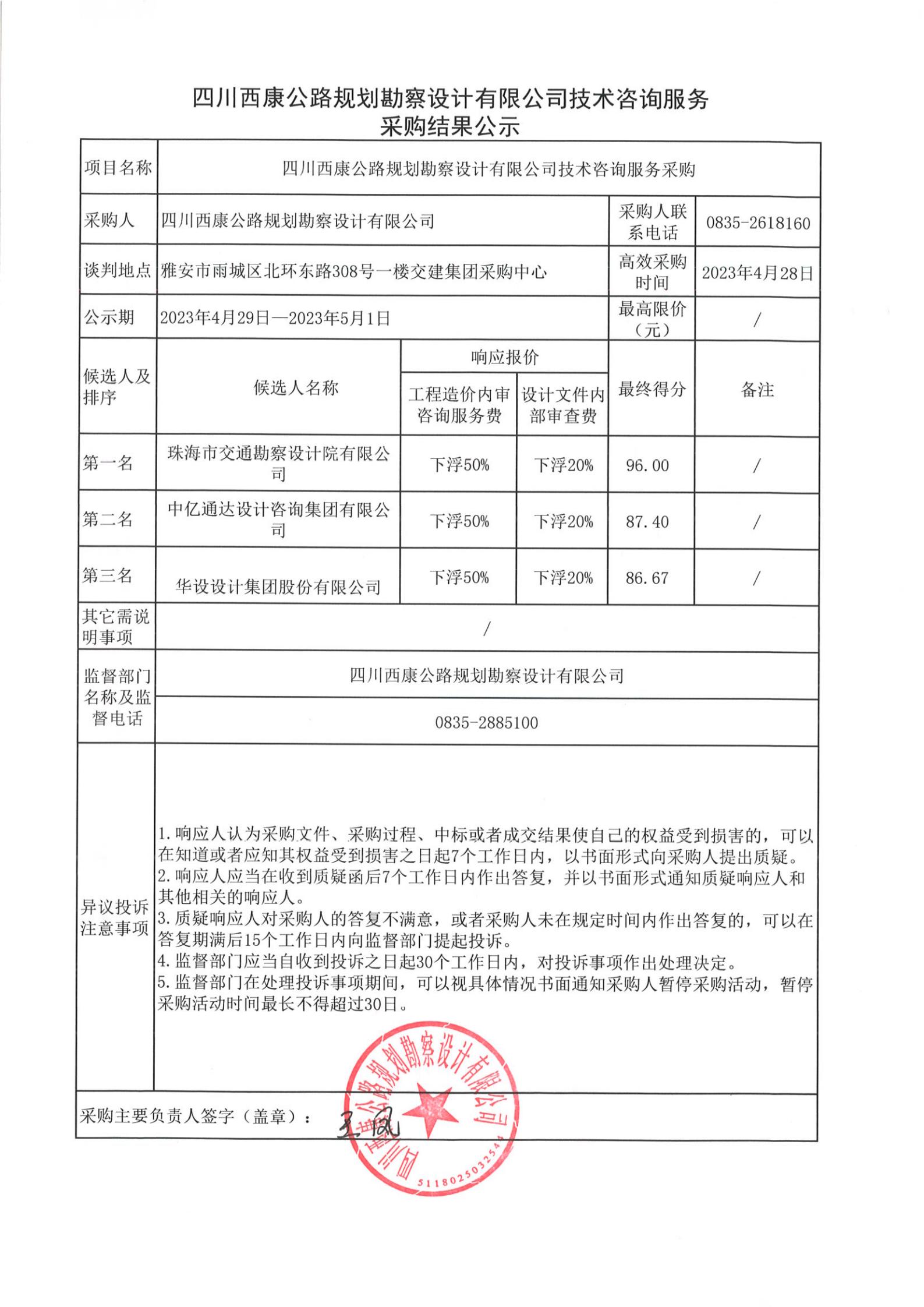 四川西康公路規(guī)劃勘察設(shè)計(jì)有限公司技術(shù)咨詢服務(wù)采購(gòu)結(jié)果公示