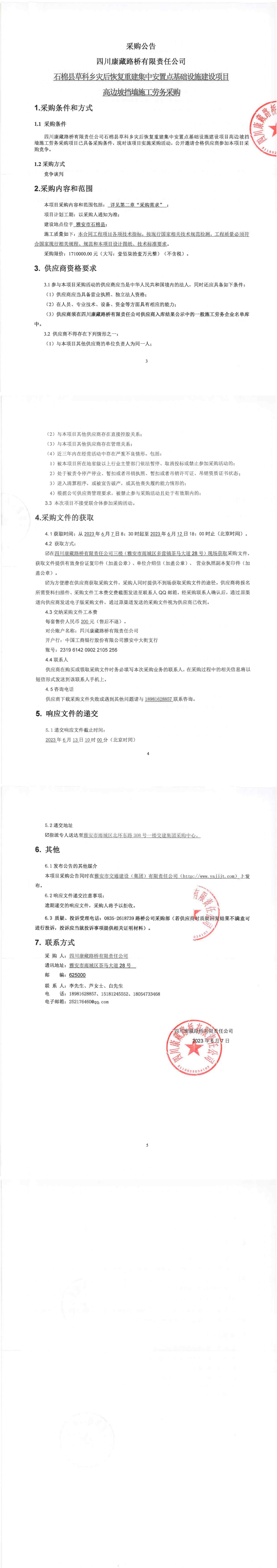 四川康藏路橋有限責(zé)任公司石棉縣草科鄉(xiāng)災(zāi)后恢復(fù)重建集中安置點(diǎn)基礎(chǔ)設(shè)施建設(shè)項(xiàng)目高邊坡?lián)鯄κ┕趧?wù)采購(gòu)