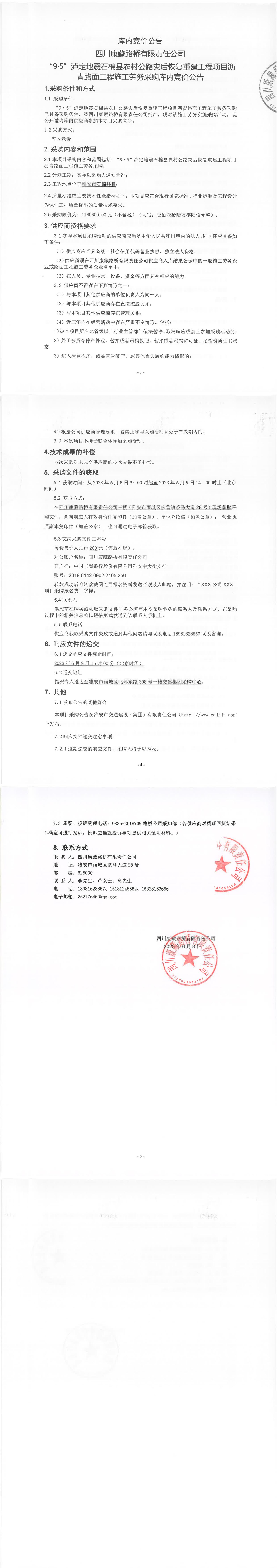 四川康藏路橋有限責任公司“9·5”瀘定地震石棉縣農(nóng)村公路災(zāi)后恢復(fù)重建工程項目瀝青路面工程施工勞務(wù)采購庫內(nèi)競價公告