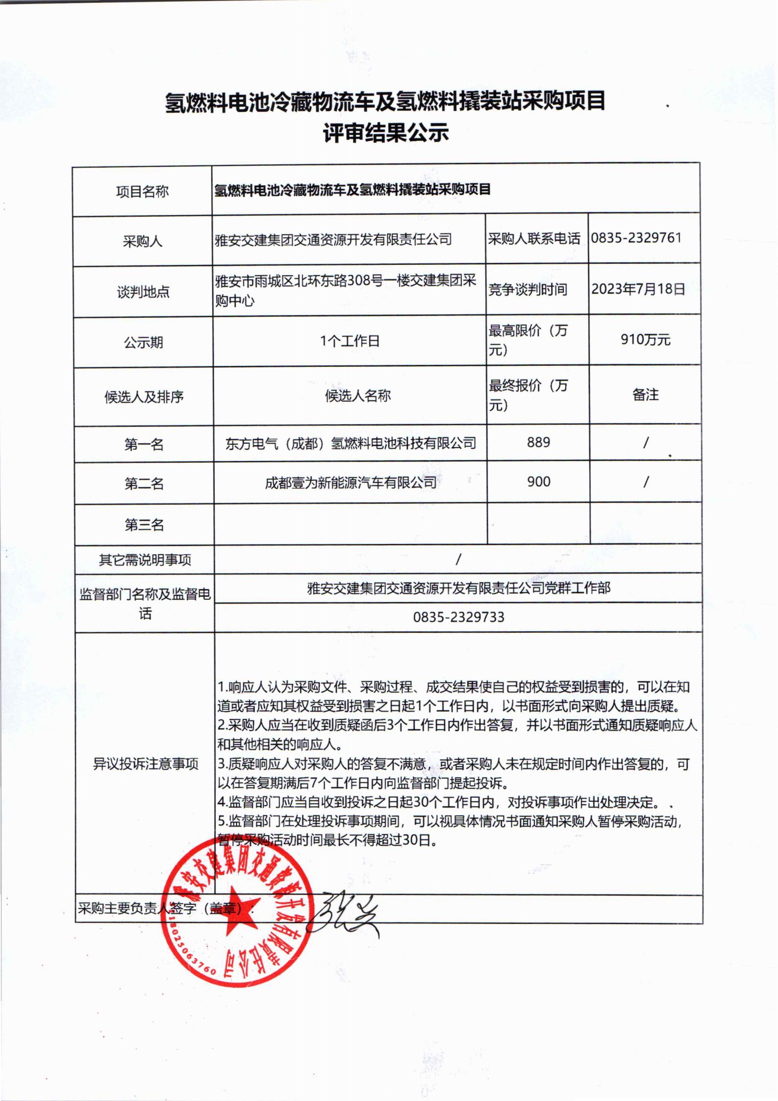 雅安交建集團交通資源開發(fā)有限責(zé)任公司氫燃料撬裝站采購項目評審結(jié)果公示