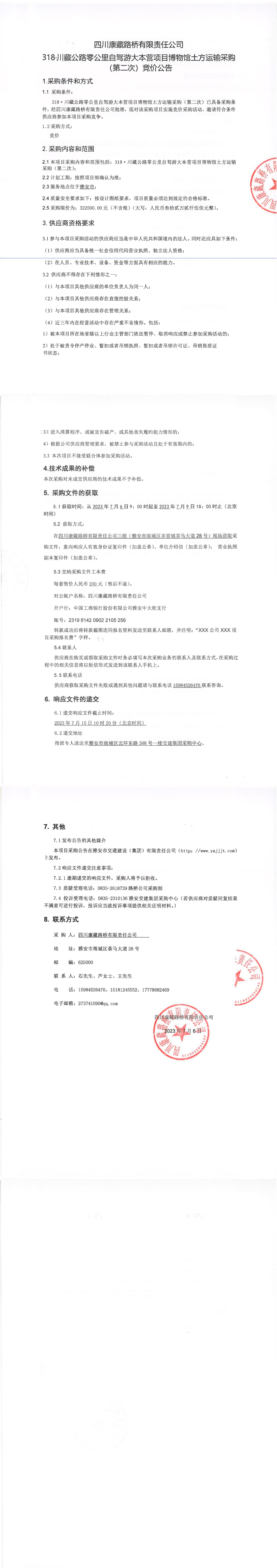 四川康藏路橋有限責任公司318·川藏公路零公里自駕游大本營項目博物館土方運輸采購(第二次)競價公告