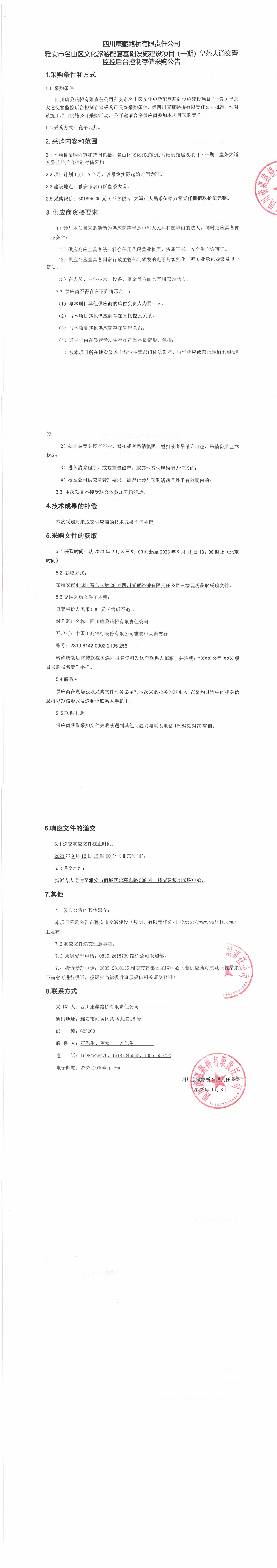四川康藏路橋有限責(zé)任公司雅安市名山區(qū)文化旅游配套基礎(chǔ)設(shè)施建設(shè)項(xiàng)目(一期)皇茶大道交警監(jiān)控后臺(tái)控制存儲(chǔ)采購公告