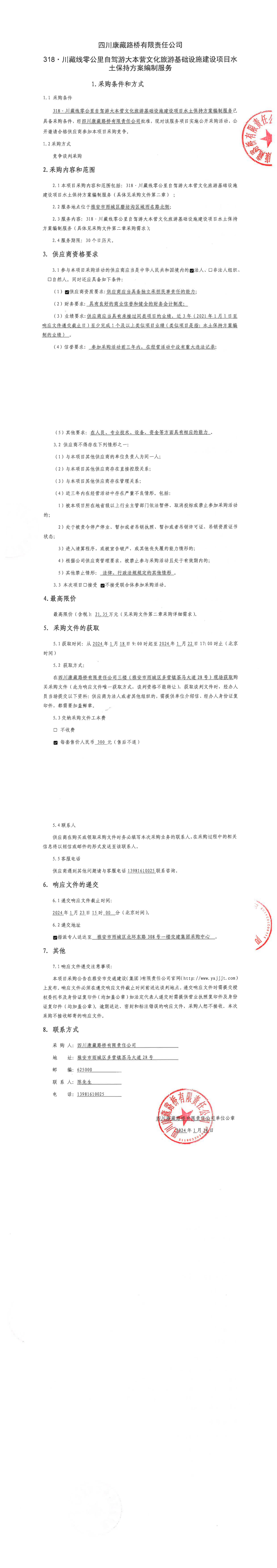 四川康藏路橋有限責(zé)任公司318·川藏線零公里自駕游大本營(yíng)文化旅游基礎(chǔ)設(shè)施建設(shè)項(xiàng)目水土保持方案編制服務(wù)采購(gòu)公告