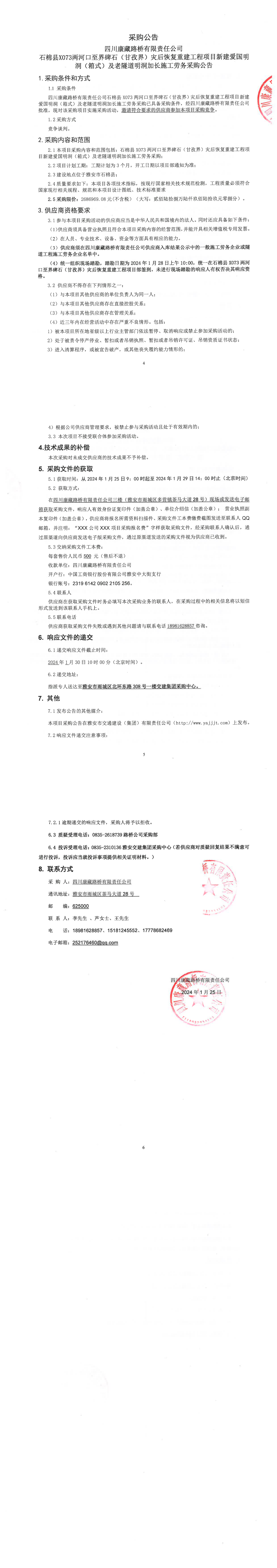 四川康藏路橋有限責(zé)任公司石棉縣X73兩河口至界碑石(甘孜界)災(zāi)后恢復(fù)重建工程項(xiàng)目新建愛國明洞(箱式)及老隧道明洞加長施工勞務(wù)采購公告