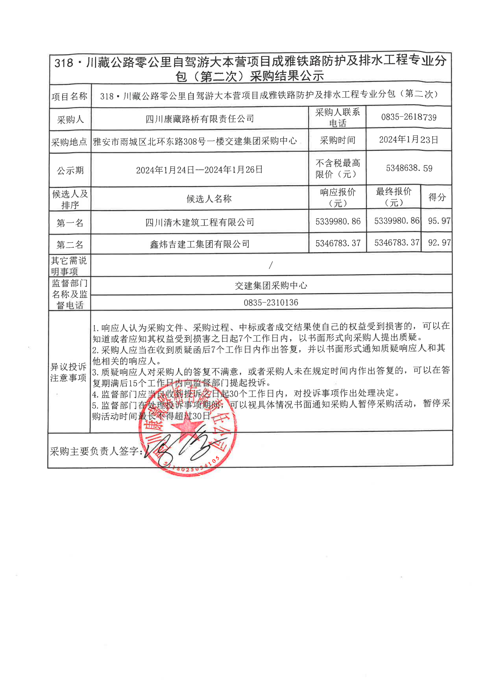 四川康藏路橋有限責(zé)任公司318·川藏公路零公里自駕游大本營項(xiàng)目成雅鐵路防護(hù)及排水工程專業(yè)分包(第二次)采購結(jié)果公示