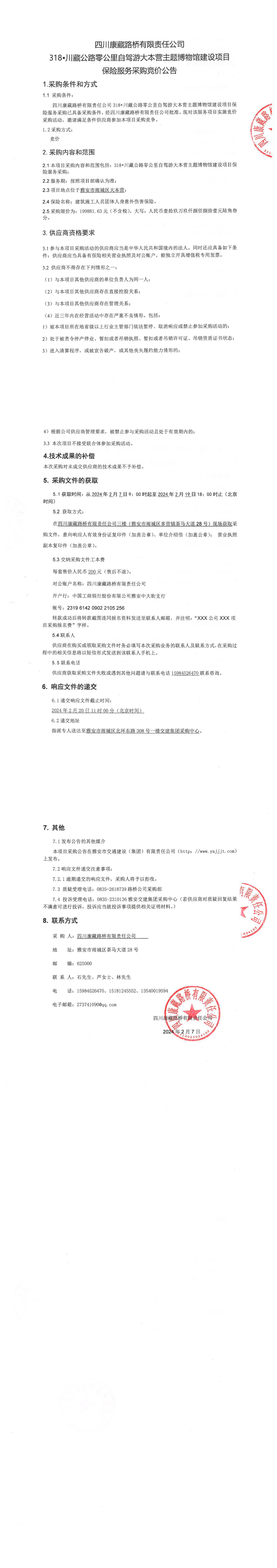 四川康藏路橋有限責任公司318•川藏公路零公里自駕游大本營主題博物館建設項目保險服務采購公告