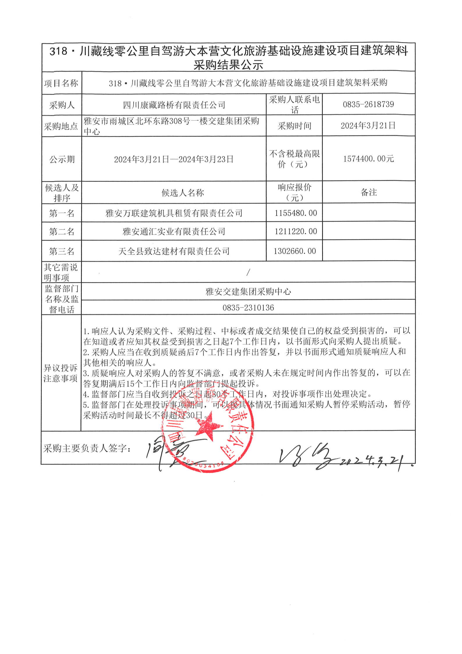 四川康藏路橋有限責任公司318·川藏線零公里自駕游大本營文化旅游基礎(chǔ)設(shè)施建設(shè)項目建筑架料租賃采購結(jié)果公示