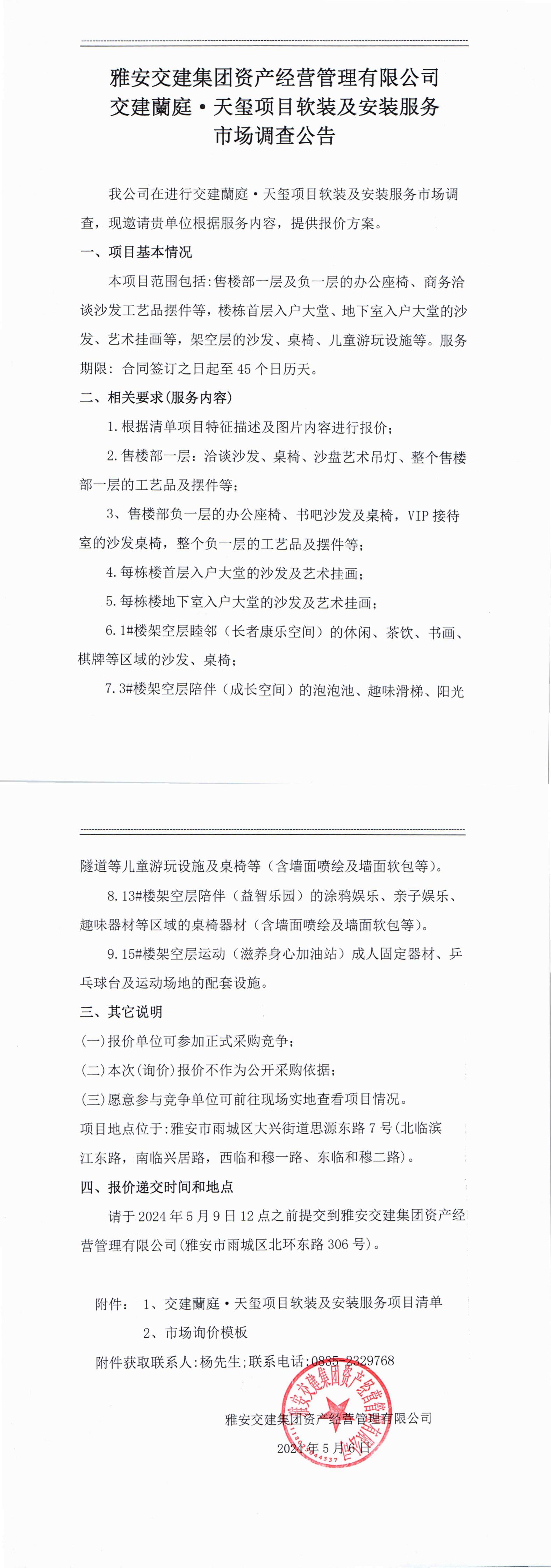 雅安交建集團(tuán)資產(chǎn)經(jīng)營(yíng)管理有限公司交建蘭庭·天璽項(xiàng)目軟裝及安裝服務(wù)市場(chǎng)調(diào)查公告