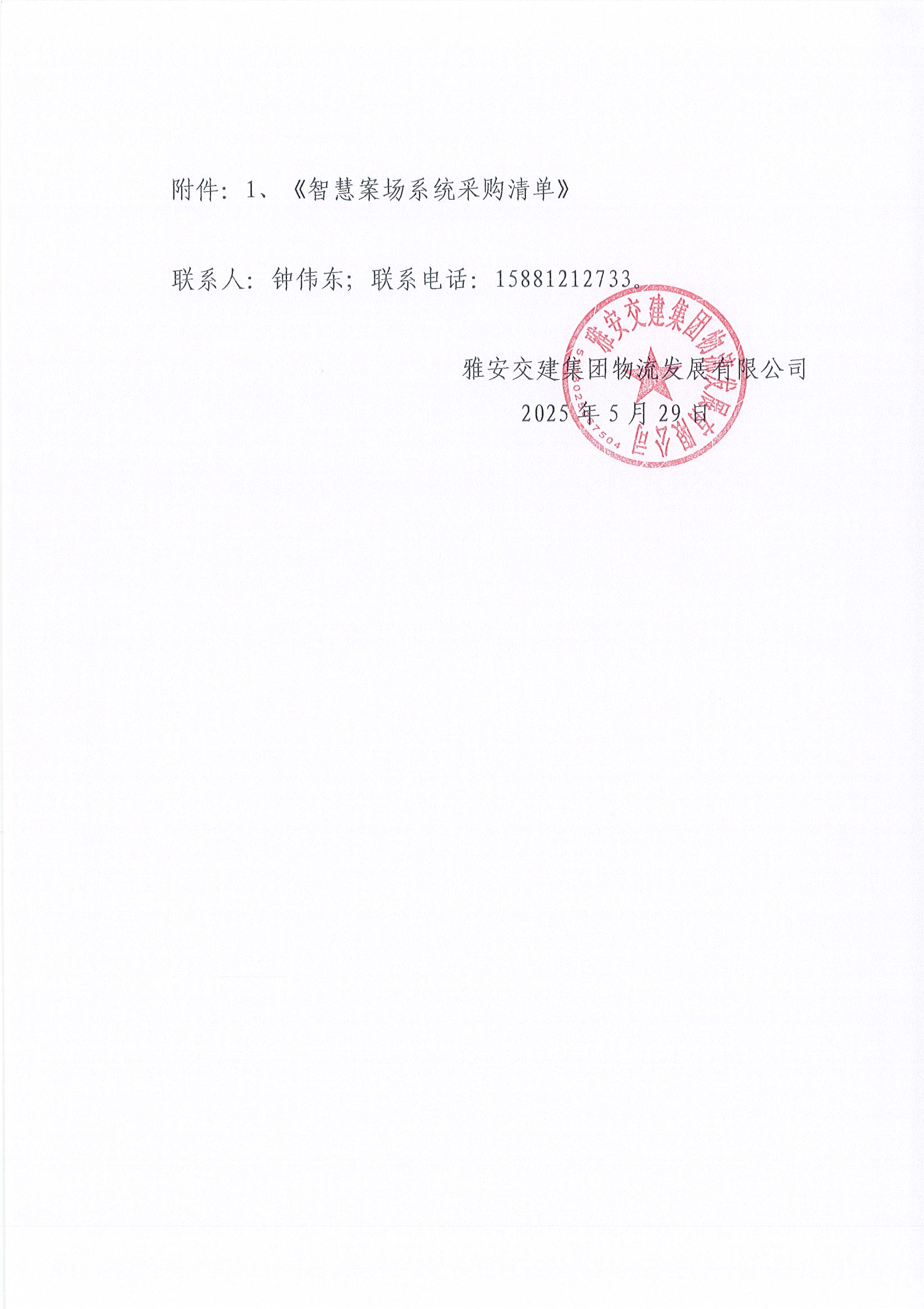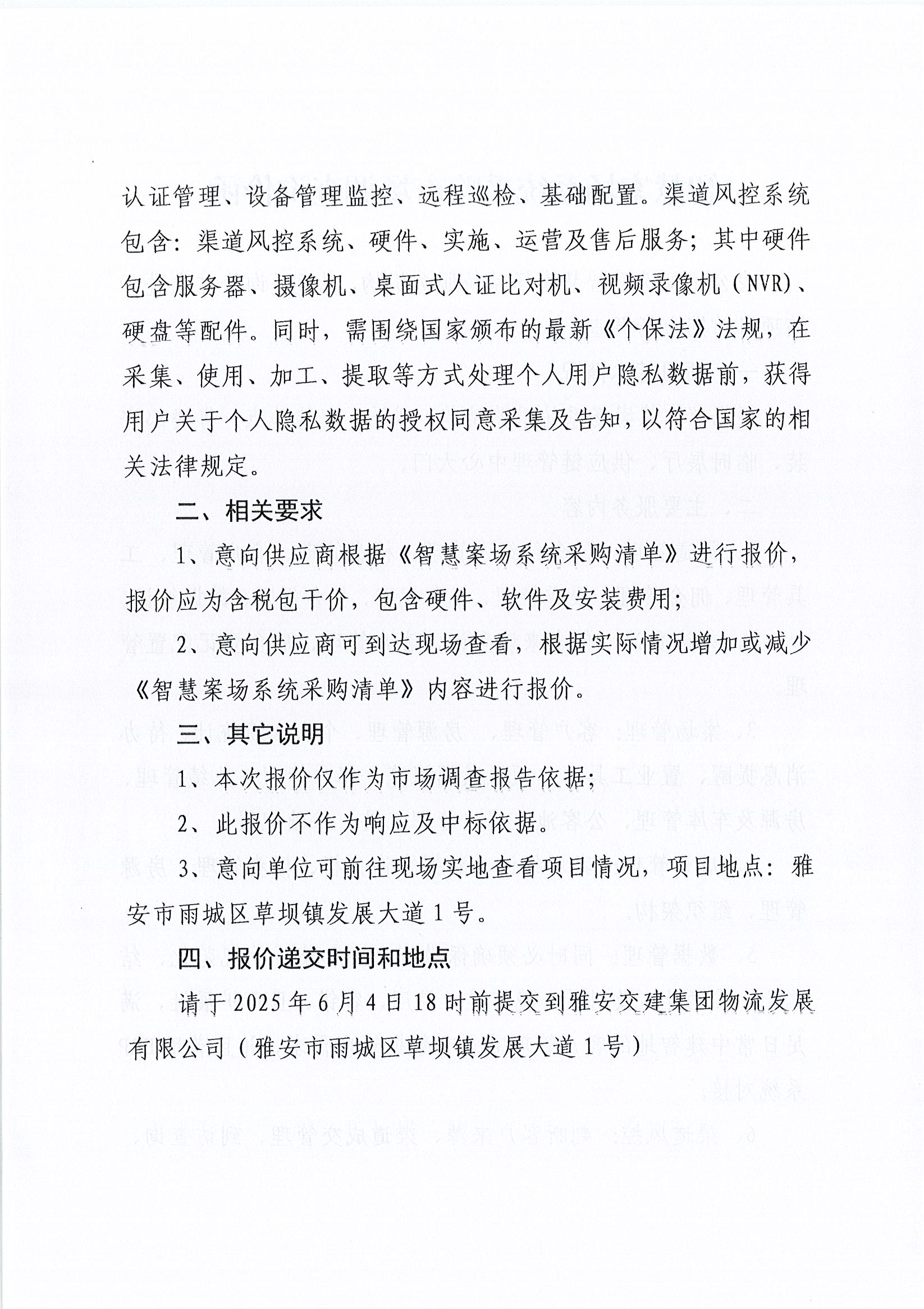 雅安交建集團(tuán)物流發(fā)展有限公司智慧案場(chǎng)系統(tǒng)采購(gòu)市場(chǎng)調(diào)查詢價(jià)函