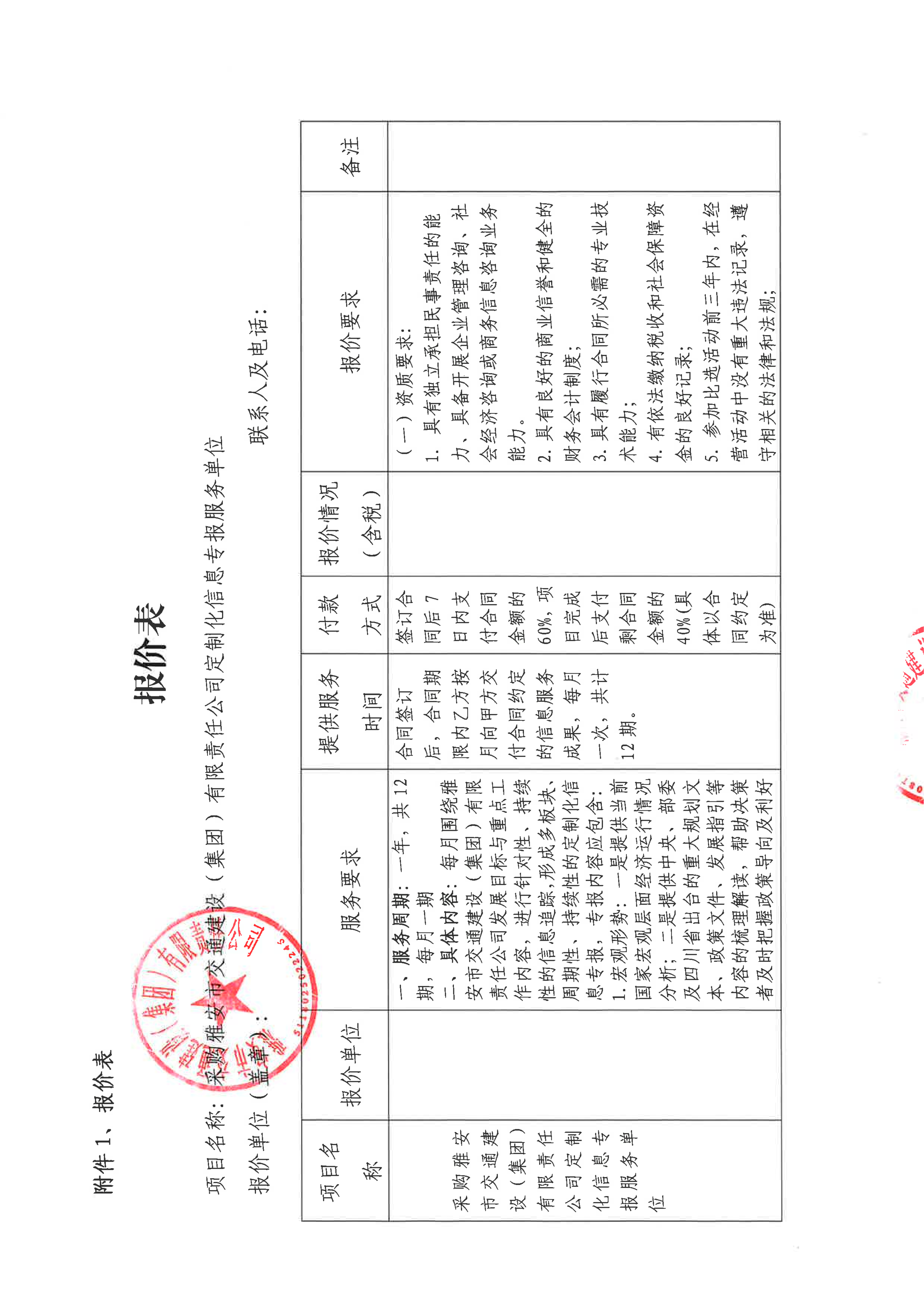 關(guān)于雅安市交通建設(shè)(集團(tuán))有限責(zé)任公司定制化信息專報服務(wù)采購限價的詢價函