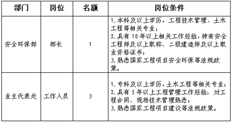 根據(jù)發(fā)展需要,決定面向社會(huì)公開招聘雅安市交通建設(shè)(集團(tuán))有限責(zé)任公司(以下簡稱“雅安交建集團(tuán)”)所屬子公司相關(guān)人員4名,現(xiàn)將有關(guān)事項(xiàng)公告如下: