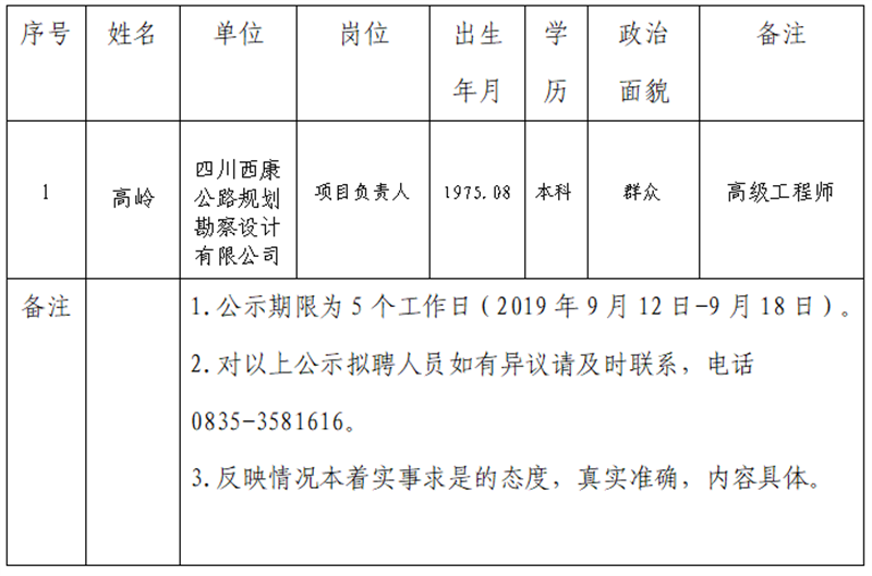 雅安交建集團子公司擬聘用人員公示 (勘察設(shè)計公司)