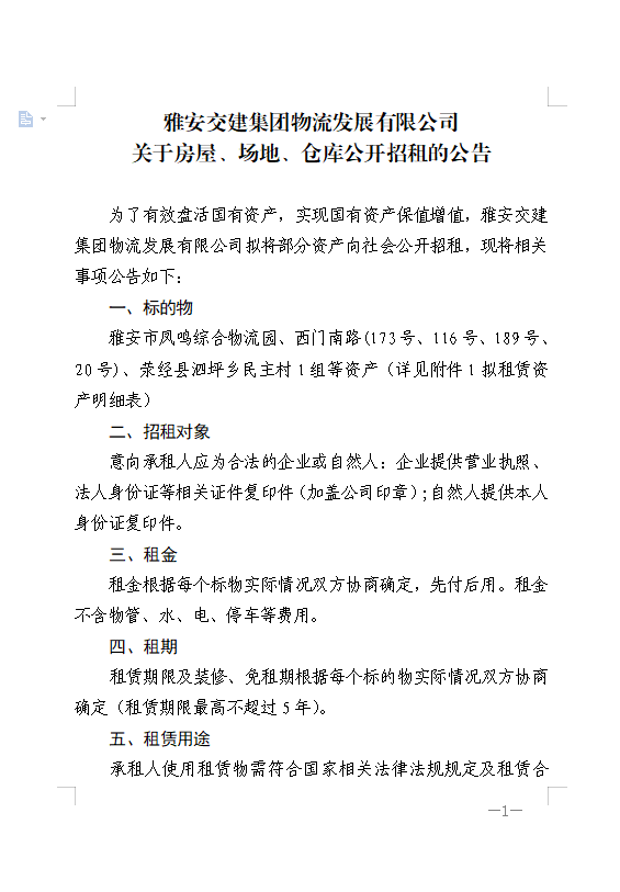 ÑŰ²½»½¨¼¯ˆFÎïÁ÷°l(f¨¡)Õ¹ÓÐÏÞ¹«Ë¾êPÓÚ·¿ÎÝ¡¢ˆöµØ¡¢‚}Žì¹«é_ÕÐ×âµÄ¹«¸æ¸½¼þ1¡¢2