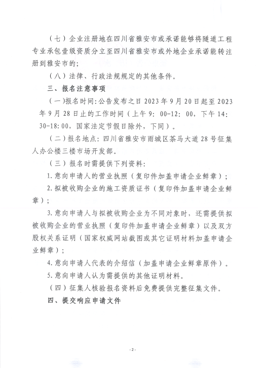 四川康藏路橋有限責(zé)任公司關(guān)于股權(quán)收購(gòu)隧道工程施工企業(yè)征集公告(第二次)