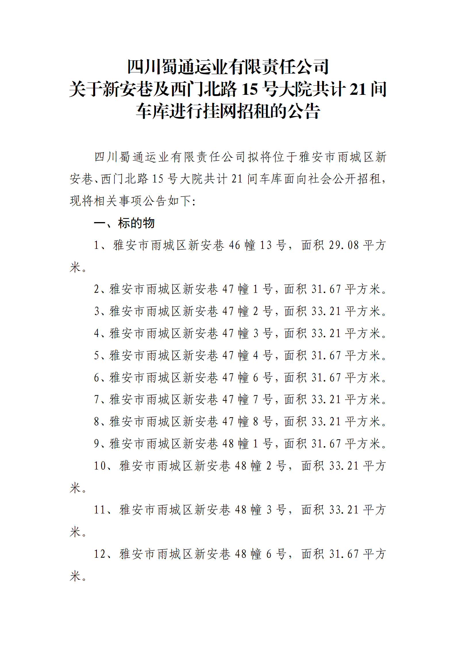 ËÄ´¨Êñͨß\(y¨´n)˜I(y¨¨)ÓÐÏÞØŸ(z¨¦)Èι«Ë¾ êP(gu¨¡n)ÓÚа²Ïï¼°Î÷éT±±Â·15Ì–´óÔº¹²Ó‹21ég܇ŽìßM(j¨¬n)ÐÐ’ì¾W(w¨£ng)ÕÐ×âµÄ¹«¸æ