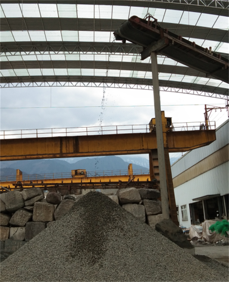 3月14日下午15:00時,第一車施工棄渣從寶興縣靈關(guān)鎮(zhèn)代碑寺施工現(xiàn)場運抵興寶投資公司委托加工合作企業(yè)——寶興縣健迅石材廠。棄渣投入料倉后,經(jīng)過顎破、圓錐破、沖擊破三次破碎后,掉落在地面,這標(biāo)志著興寶公司與寶興縣健迅石材廠委托加工合作正式啟動。