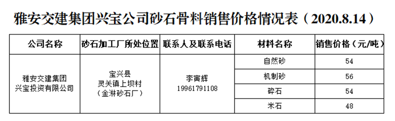 ÑŰ²½»½¨¼¯ˆF(tu¨¢n)ÅdŒš¹«Ë¾É°Ê¯¹ÇÁÏäN(xi¨¡o)ÊÛƒr(ji¨¤)¸ñÇé›r±í£¨2020.8.14£©