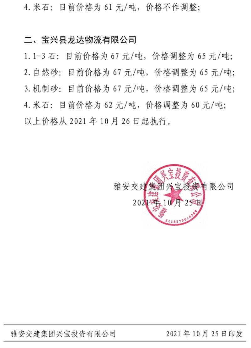 ÑŰ²½»½¨¼¯ˆFµ¤Ê¯¹«Ë¾êPÓÚÕ{(di¨¤o)Õû³ÉÆ·¹ÇÁϼ°ïL»¯µVʯÁÏäNÊÛƒr¸ñµÄ֪ͨ£¨2021.10.26£©