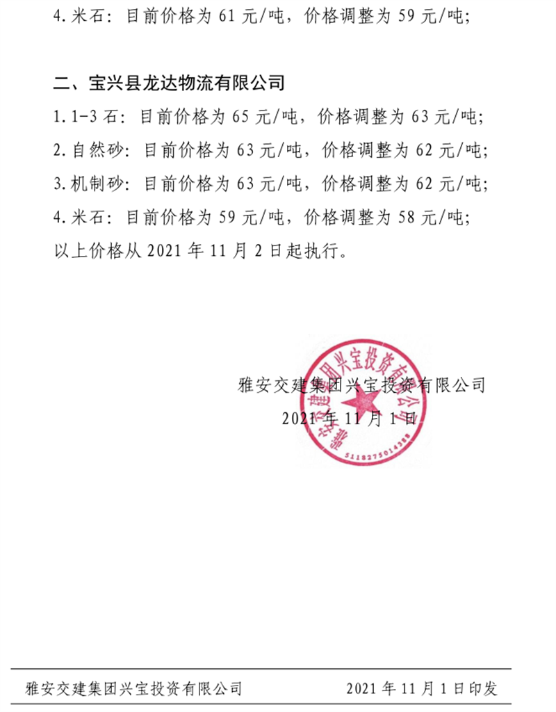 ÑŰ²½»½¨¼¯ˆF(tu¨¢n)ÅdŒš¹«Ë¾êP(gu¨¡n)ÓÚÕ{(di¨¤o)Õû³ÉÆ·ÁÏäNÊÛƒr¸ñµÄ֪ͨ£¨2021.11.2£©