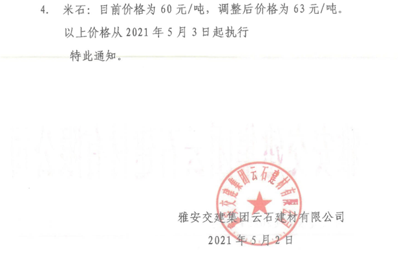 ÑŰ²½»½¨¼¯ˆF(tu¨¢n)ÔÆÊ¯¹«Ë¾É°Ê¯¹ÇÁÏäNÊÛƒr(ji¨¤)¸ñÇé›r±í£¨2021.5.3£©