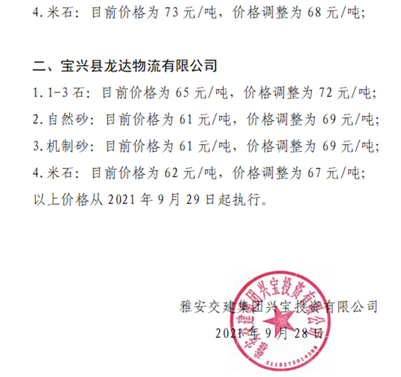 ÑŰ²½»½¨¼¯ˆF(tu¨¢n)ÅdŒš¹«Ë¾êP(gu¨¡n)ÓÚÕ{(di¨¤o)Õûɰʯ³ÉÆ·ÁÏäNÊÛƒr¸ñµÄ֪ͨ£¨2021.9.28£©