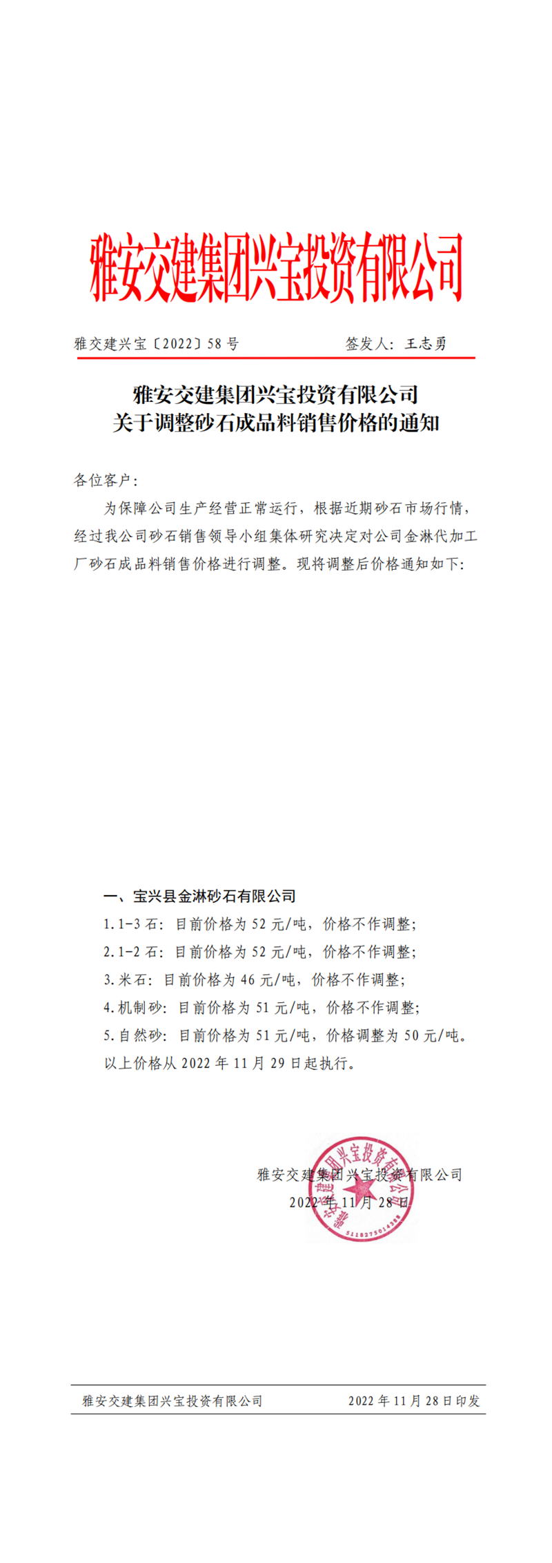 ÑŽ»½¨ÅdŒš¡²2022¡³62Ì– êP(gu¨¡n)ÓÚÕ{(di¨¤o)Õûɰʯ³ÉÆ·ÁÏäNÊÛƒr¸ñµÄ֪ͨ£¨2022-12-2£©
