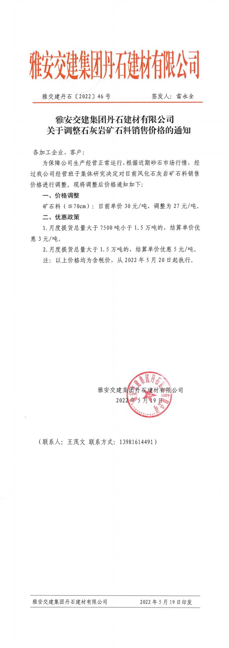 ÑŰ²½»½¨¼¯ˆF(tu¨¢n)µ¤Ê¯¹«Ë¾êP(gu¨¡n)ÓÚÕ{(di¨¤o)Õûʯ»Ò?gu¨©)rµVʯÁσr¸ñµÄ֪ͨ-2022-5-19