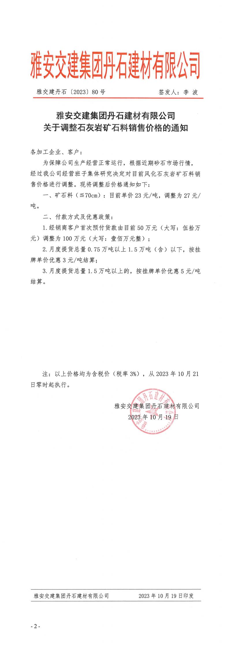 ÑŰ²½»½¨µ¤Ê¯¹«Ë¾êPÓÚʯ»Ò?gu¨©)rµVʯÁÏÕ{ƒrµÄ֪ͨ--2023.10.20